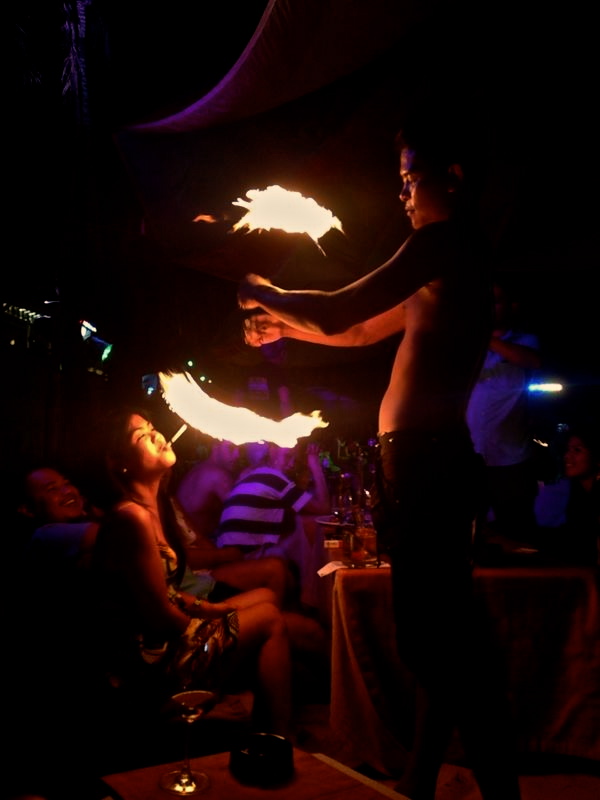 Party, Party! Boracay is famous for its party atmosphere and offers more than one way to unwind, meet new people and have fun. Maybe it was the Christmas cheer in the air, but everyone was so happy to be there. We took advantage of the party reputation of Boracay and joined the Manic Monkey crew on a catamaran sunset cruise. Disco balls, house music, drinks, food, swimming and sunset. Their crew was keen on entertaining guests and keeping the mood going. It was incredibly memorable and worth the 35 euros. By night, walk the beach and pick one of the countless bars luring you in with fun music, good drinks and colorful island decor. Fire dancing is a must, but don’t take part if you’re arsonphobic! Some dancers are more outgoing and get remarkably close to the patrons in the front row.