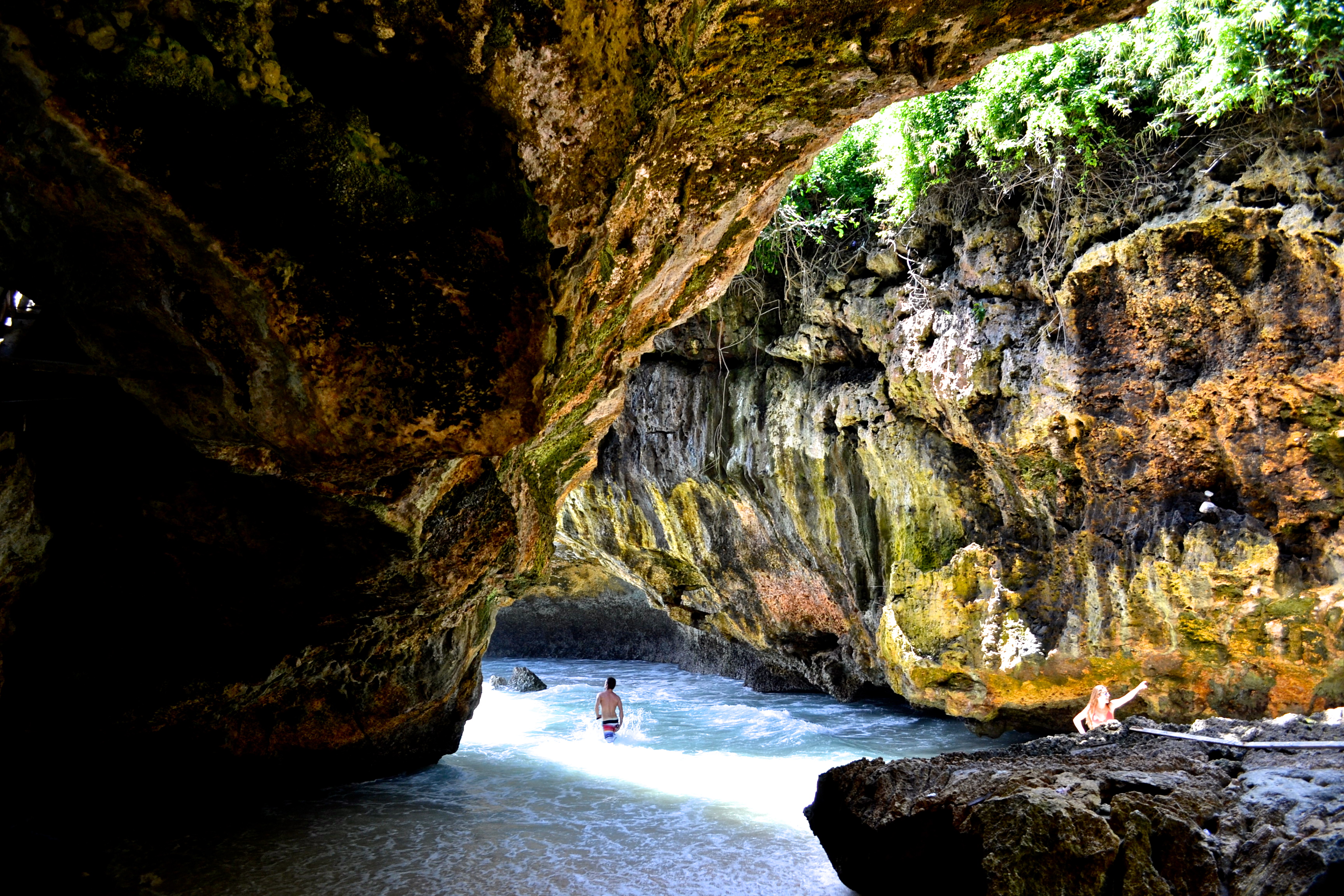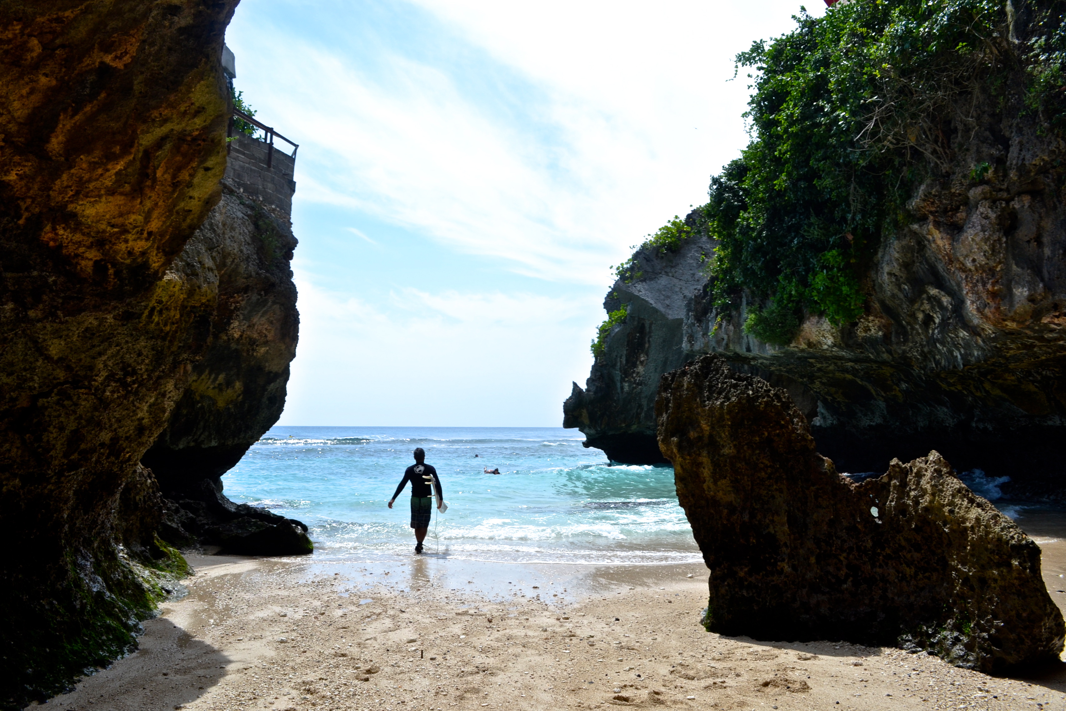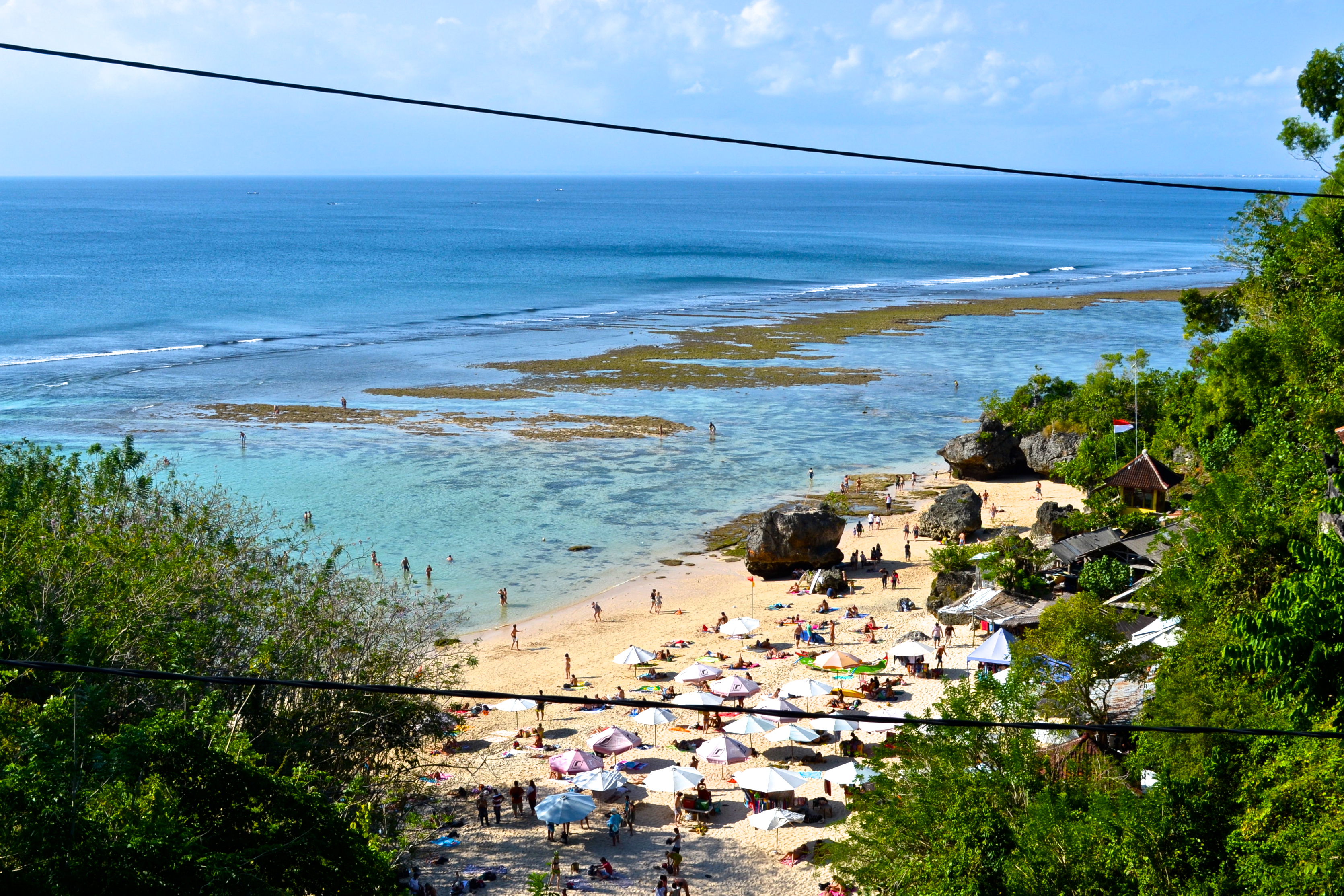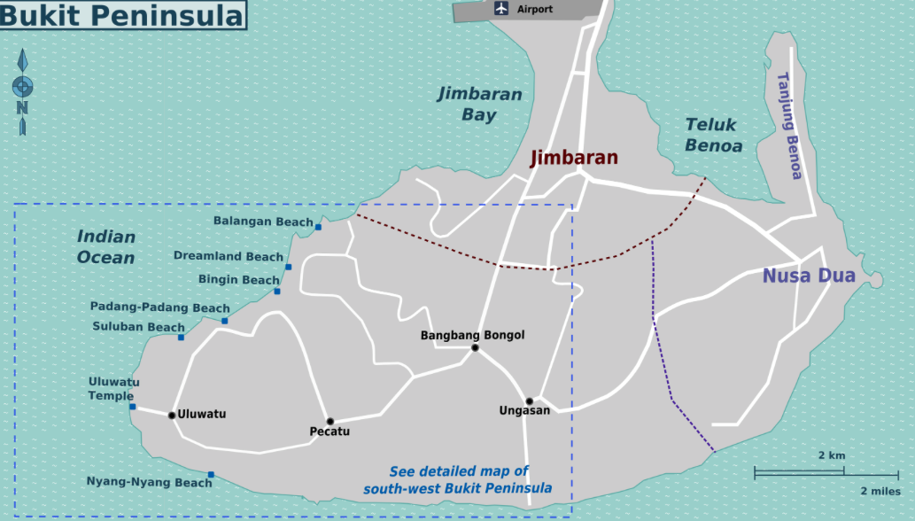 I don’t throw the word “paradise” around easily, but that’s what this side of Bali looks like with its white sand beaches and dramatic limestone cliff features. With a motorbike and no plans, we traveled up and down Bali’s most southern coast in search of some of the most beautiful beaches on the island. Sure, Seminyak and Kuta up north are fun, but no one will argue that their beaches are nicer than say, Bingin Beach or Padang-Padang Beach. For me, seeing the Bukit Peninsula of Bali reminded me just how diverse and gorgeous this island is. It’s my second favorite place after Ubud and for me is the epitome of how Indonesia keeps surprising me. Not sure where to stay? Have the best of both worlds: Stay in Seminyak or Kuta to enjoy the culinary scene and nightlife and then take day trips down to the Bukit for a change of pace and seclusion. By taxi, it’s about 30-40 minutes or by motorbike, about an hour driving to the most southern tip of Uluwatu. See map below.