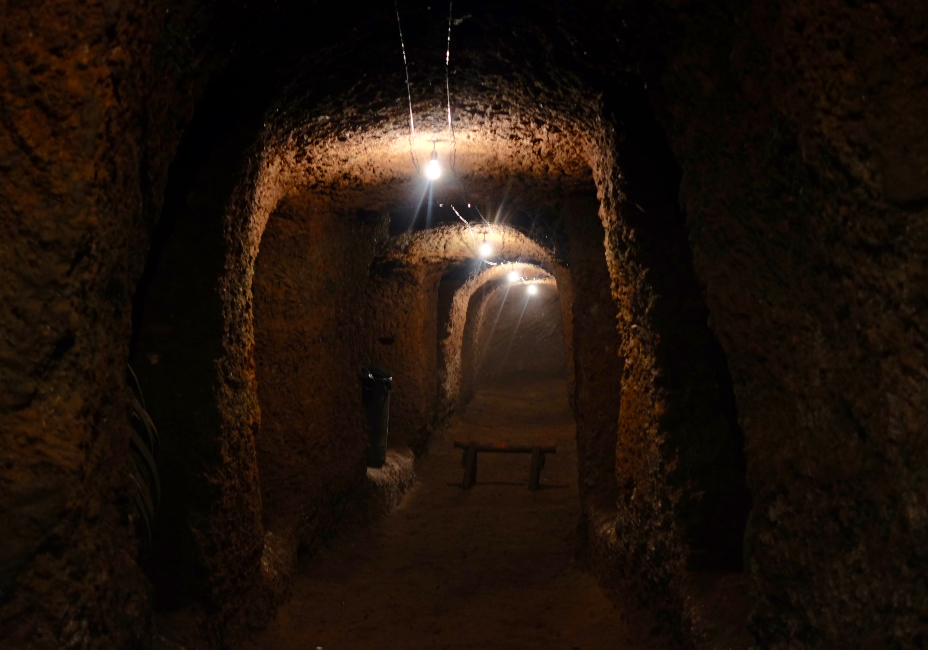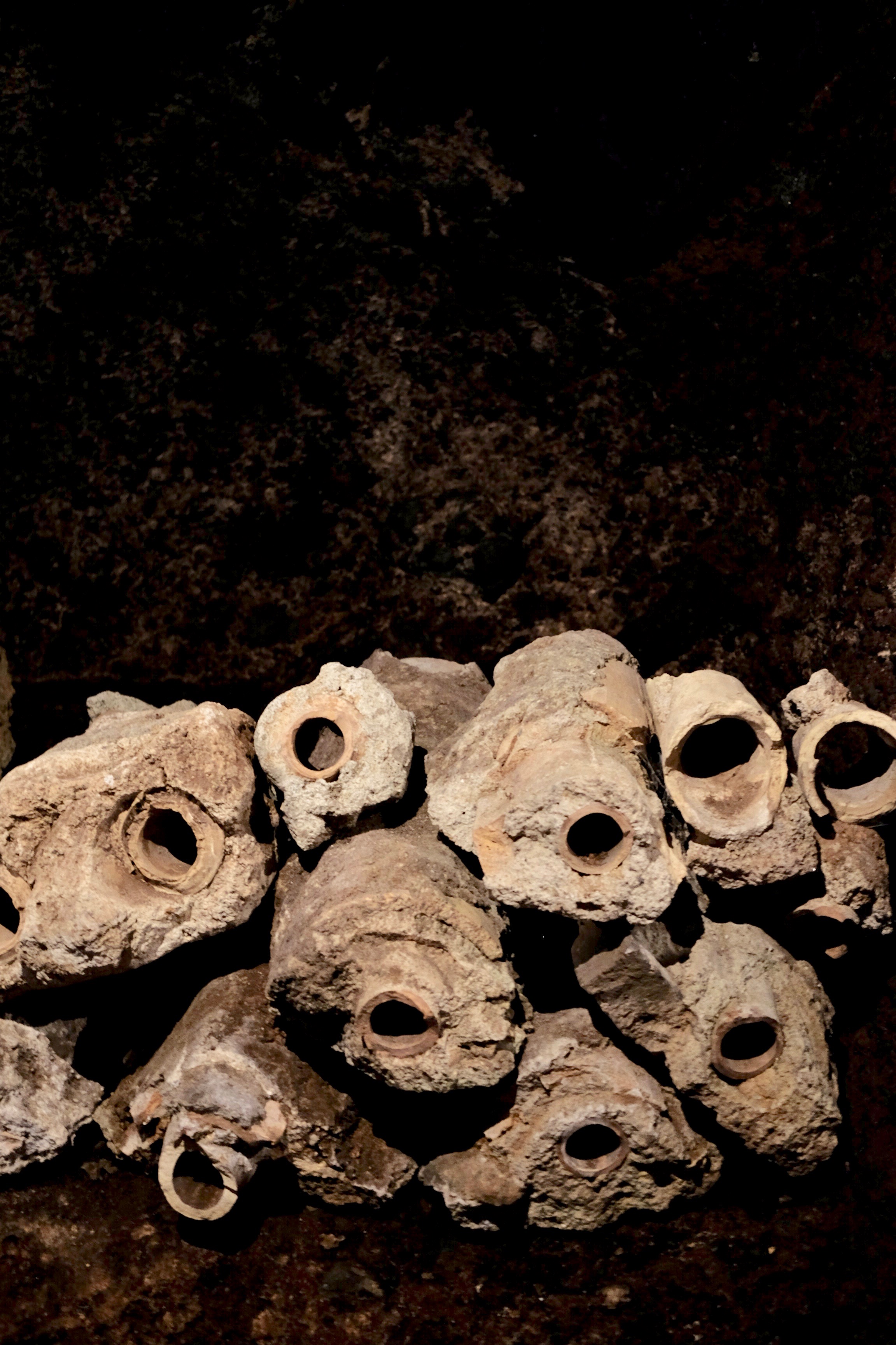 We gathered under a beautiful tree and began our Frascati wine education with a different Paola, a 7th generation winemaker. It was inspiring to learn about the deep traditions that are still infused into their production of one thousand bottles per year. Of the 100 different grapes in Italy, this wine is made mostly with a Malvasia grape that flourishes in the volcanic ash soil of Frascati. The history of the property is pretty astounding as well. Dating of medieval pipes in the cellar (pictured below) go back to 1500. Even more impressive, an area in the cellar served as a refuge for people fleeing persecution in WWII.