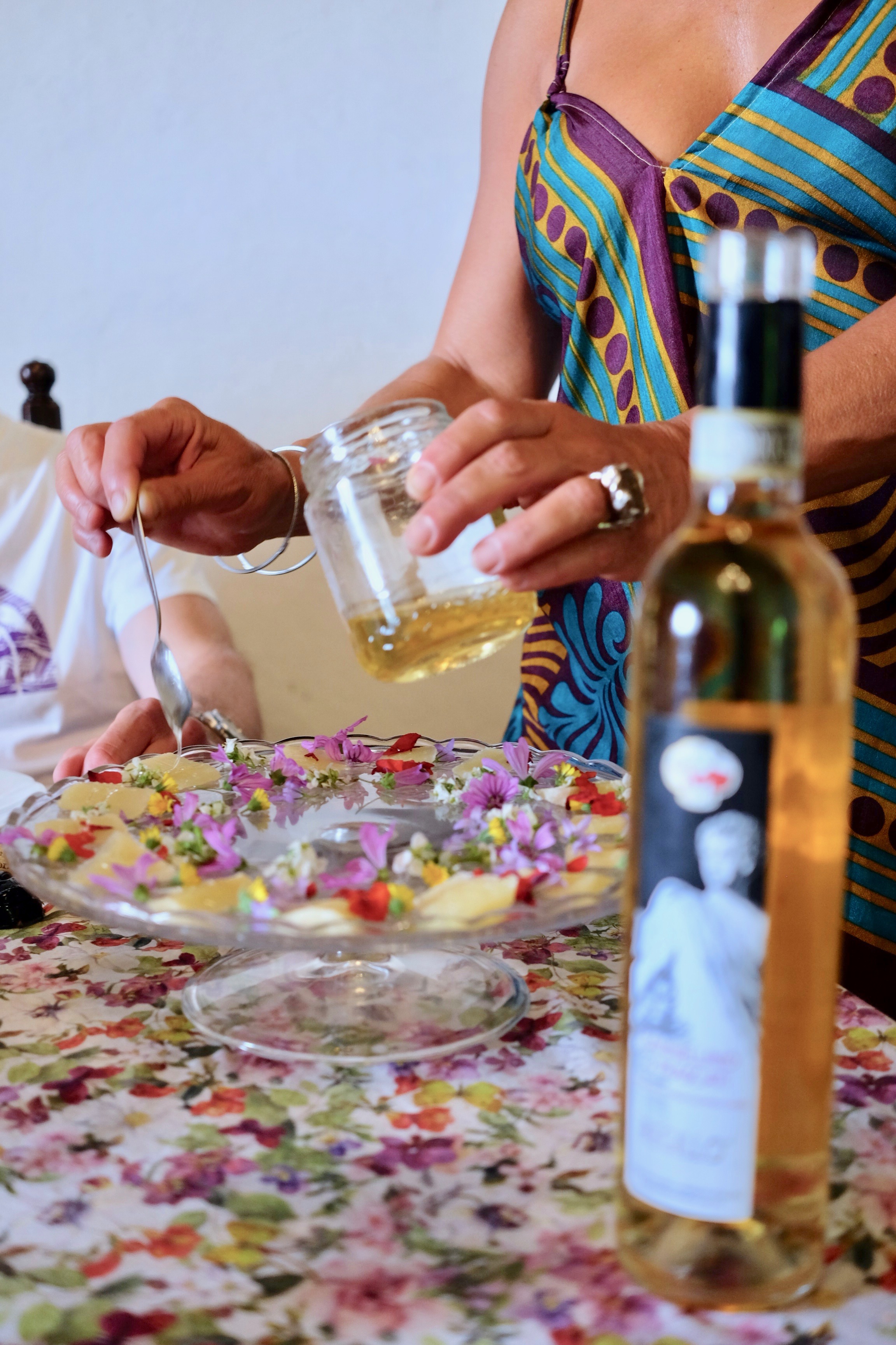 After seeing the incredible wine cave, we went upstairs and dined in the gorgeous dining room with its balcony overlooking the vineyard. We tried three different wines (Frascati Superiore DOCG, Red Vagnolo IGT, and Sweet Cannellino DOCG.) and tasted their olive oil with focaccia and flatbreads, as well as Pecorini cheese beautifully decorated with edible flowers and acacia honey. Frascati wine is not necessarily known not for its complexity, but I found it easy to drink and the white wine so refreshing! I personally enjoyed the Sweet Cannellino most.