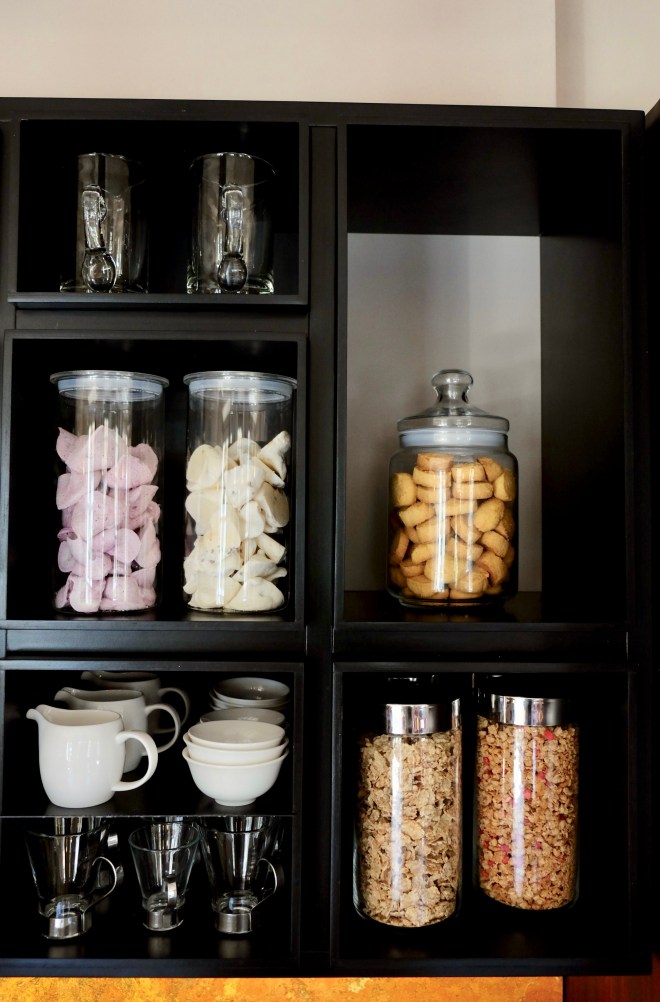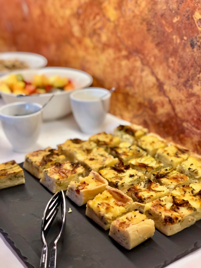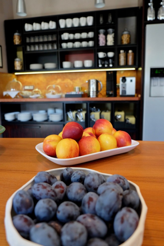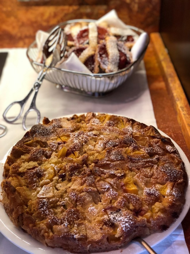 The food philosophy here is fresh ingredients and homemade everything. The sweet and savory breakfast buffet includes the freshly baked bread, pies and cakes (!) seasonal fruits, yogurts, meats and cheeses, and delicious juices, as well as eggs, made your way on request. Enjoy your coffee or tea however you want! They have Moka pots, Nespresso machine, and a frother for a cappuccino.