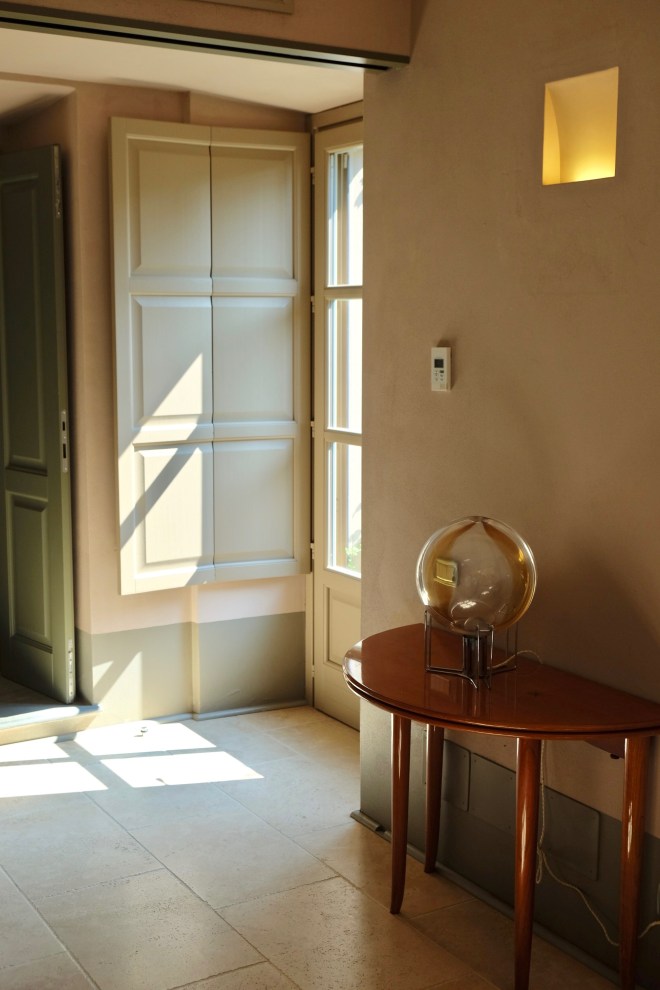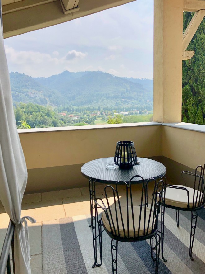 Our second night we moved to Collina, a room in a different part of the house. This room featured a sage and grey color pallet with white beamed ceilings, and large windows facing the sea views of Camaiore.