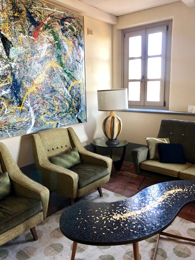 Riccardo, the owner of Locanda, greeted us on arrival and had no problem with our very early check-in. He told me the story of the property started 10 years ago when his smaller B&B was just next door. At the time, they had five rooms, no pool, and only served breakfast. When the building next door went up for sale, he saw an opportunity to combine the two houses and expand his hotel. The undertaking took two full years. In that time, Riccardo frequented markets, fairs, and galleries every weekend hunting for vintage and modern pieces to fill the space at Locanda. Since then, the hotel has won boutique and luxury hotel awards in recent years.